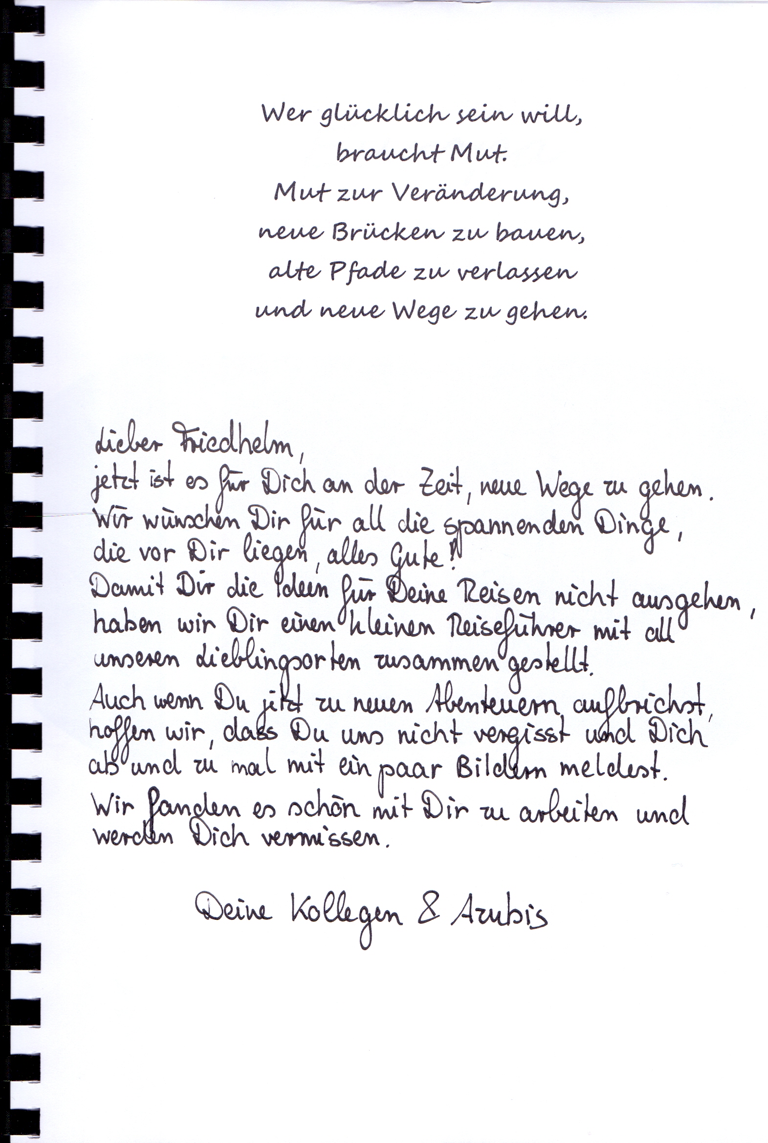 Zum Abschied Ende 2016 habe ich diesen Reiseführer mit auf den Weg bekommen. Hier hat mir jeder seinen Lieblingort empfohlen und diesen muss ich wohl jetzt auch besuchen. Ich hoffe dass ich einige Orte mit einem meiner Oldtimer erreichen, mal sehen.