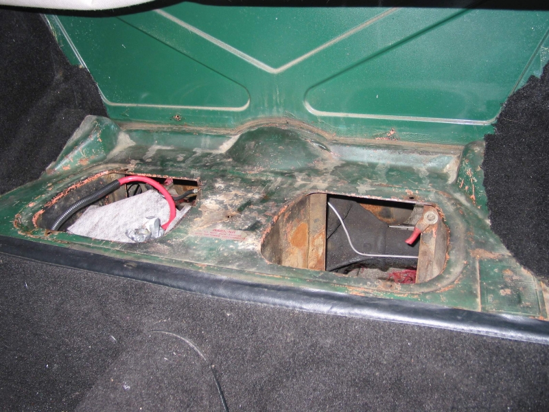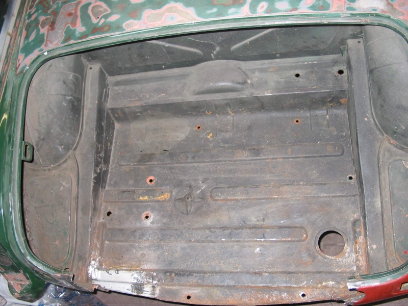 Unter der Karosserie war schon etlicher Rost vorhanden, aber keine Durchrostungen, bis auf die Bodenbleche vor den Sitzen. Die sollten ersetzt werden. Auch das Heck sollte teilweise erneuert werden und der Kofferraum war auch sehr verrostet. Jetzt kamen auch die Einzelteile des Fahrwerks zum Vorschein. Auch diese Teile sollten vom Rost befreit werden.