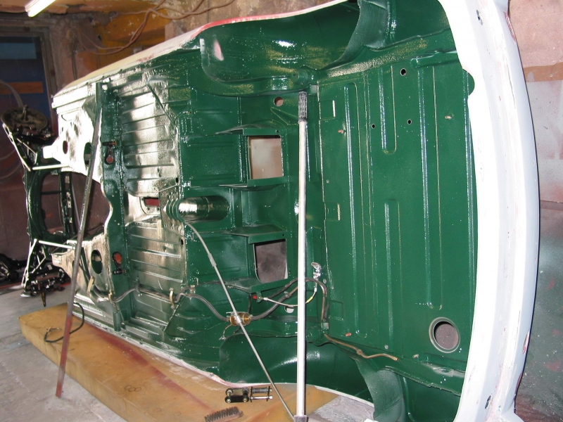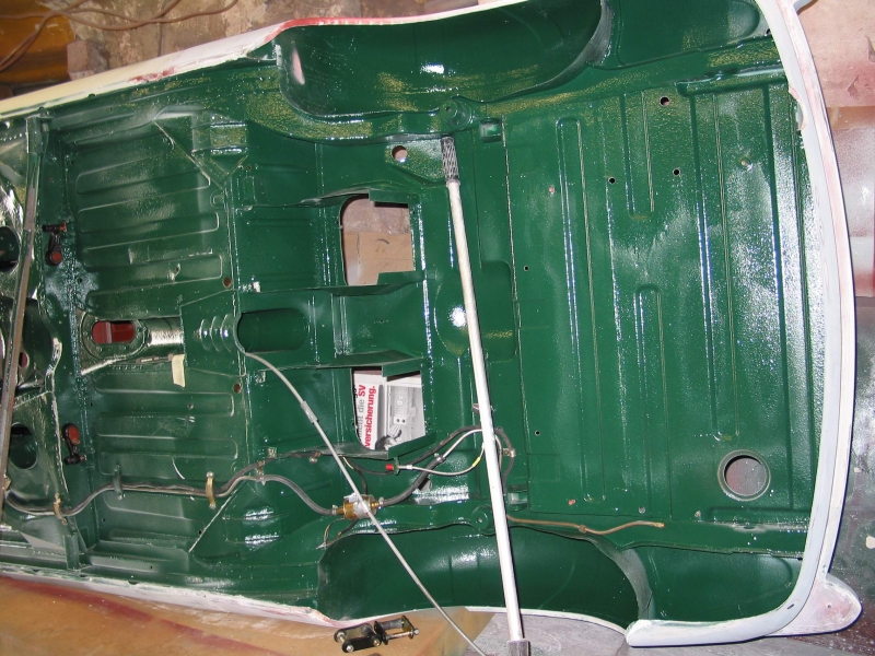 Jetzt schnell wieder aufgebaut, damit die sandgestrahlte Karosserie keine Feuchtigkeit abbekommt, sonst gibt es gleich wieder Rost. Also erst einmal gründlich gereinigt und konserviert. Danach konnte es gemütlich weitergehen. Schrittweise wurden jetzt alle Teile überarbeitet und wieder zusammengebaut. Korosserie, Fahrwerk und Innenausstattung. Der Motor konnte mechanisch so bleiben, aber das Automatikgetriebe wurde komplett überholt.