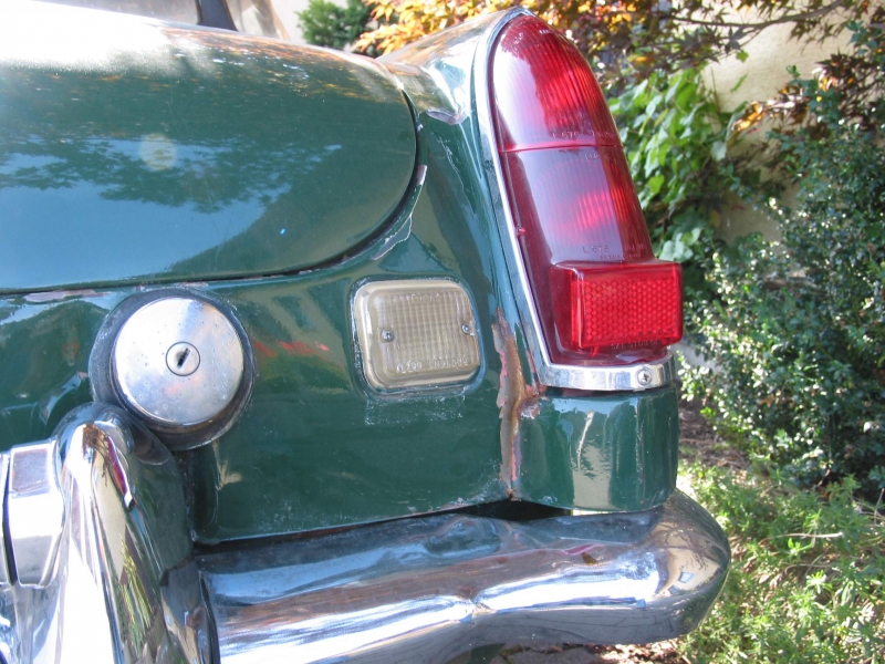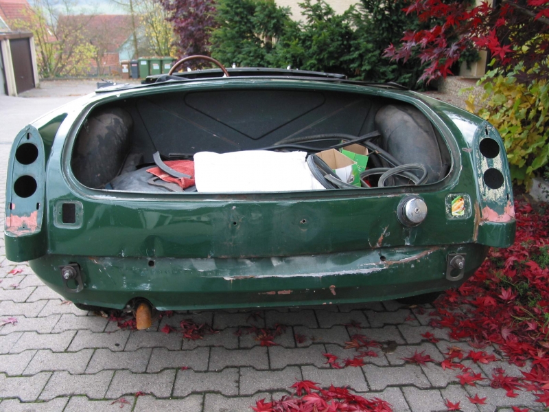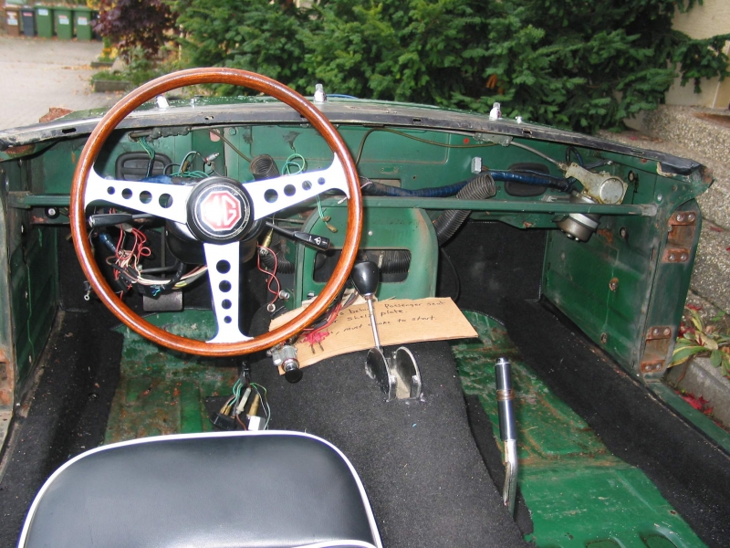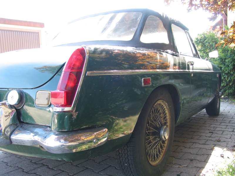 Bis auf einige Mängel machte der MGC einen ganz guten Eindruck. Der Lack war zwar nicht der Beste, aber auch nicht sooo schlecht. Das Bodenblech vorn links war durchgerostet, das Armaturenbrett eingerissen, das Verdeck eingerissen und ein kleiner Heckschaden war vorhanden. Der Aufwand aus dem MGC wieder ein schönes Auto zu machen sollte also nicht besonders groß sein.