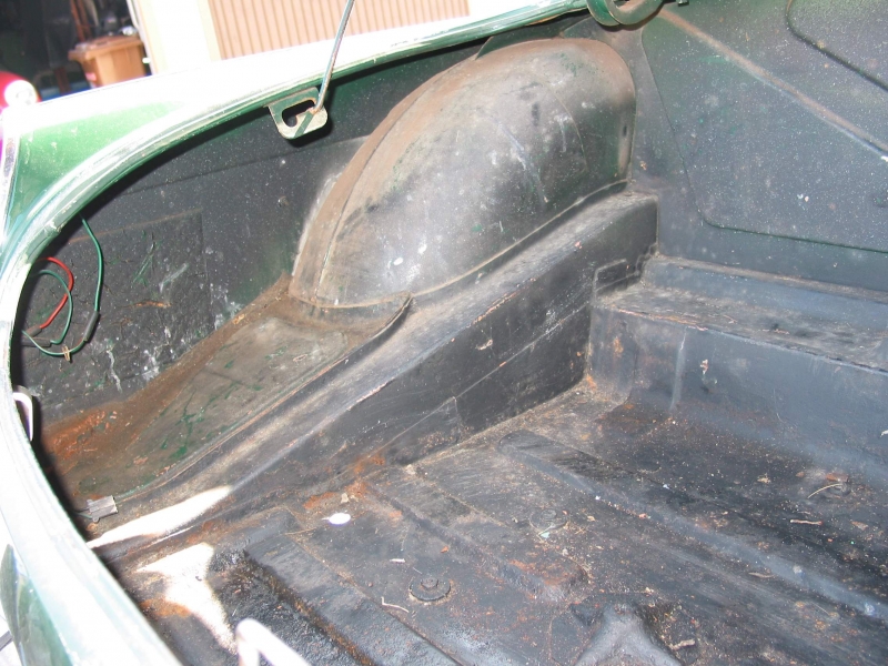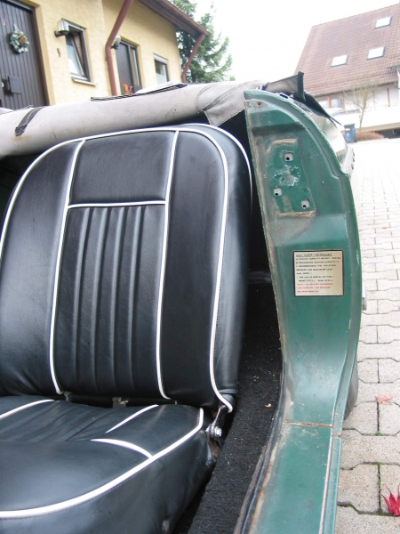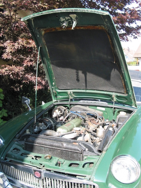 Bis auf einige Mängel machte der MGC einen ganz guten Eindruck. Der Lack war zwar nicht der Beste, aber auch nicht sooo schlecht. Das Bodenblech vorn links war durchgerostet, das Armaturenbrett eingerissen, das Verdeck eingerissen und ein kleiner Heckschaden war vorhanden. Der Aufwand aus dem MGC wieder ein schönes Auto zu machen sollte also nicht besonders groß sein.